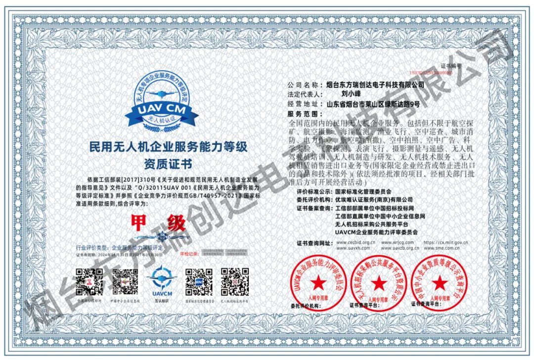 瑞創達在低空經濟發展中布局較早,資質完備,應用場景豐富多元。擁有“企業通用航空經營許可證”和“民用無人機企業服務能力資質甲級證書”,擁有中型直升機、小型多旋翼、垂直起降無人機駕駛員資格十余人,具備堅實可靠的服務保障能力,能夠為客戶量身定制并提供電力巡檢、應急救援、公安消防、物資配送、環境監測、農林植保等一系列專業化的行業解決方案和服務。誠邀各界客戶與友商洽談合作。
